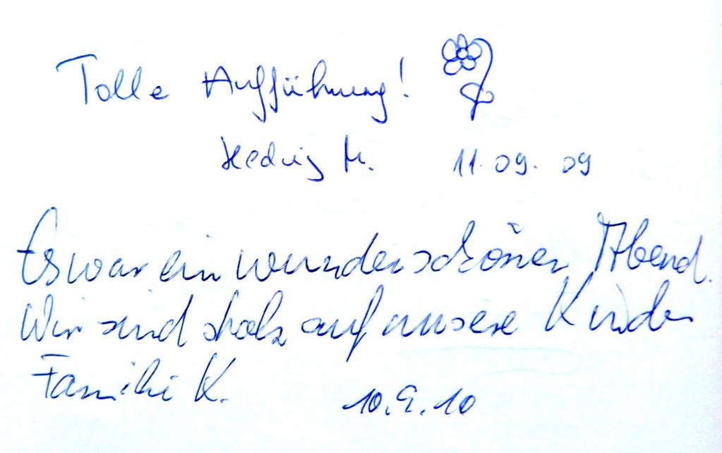 vielen herzlichen Dank für den großartigen und sehr lehrreichen Theaterlehrgang. Die Mischung