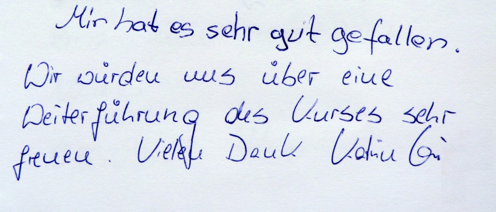 Ich hatte sehr viel Spaß und würde gerne weitere Kurse besuchen.