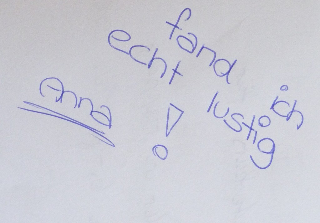 es war ein toller Kurs! Du hast die Theaterabende unglaublich vielseitig gestaltet: von Aufwärmübungen über Singen, in verschiedenen Geschwindigkeiten gehen, Pantomime, kleine Stücke einzeln vortragen.....
