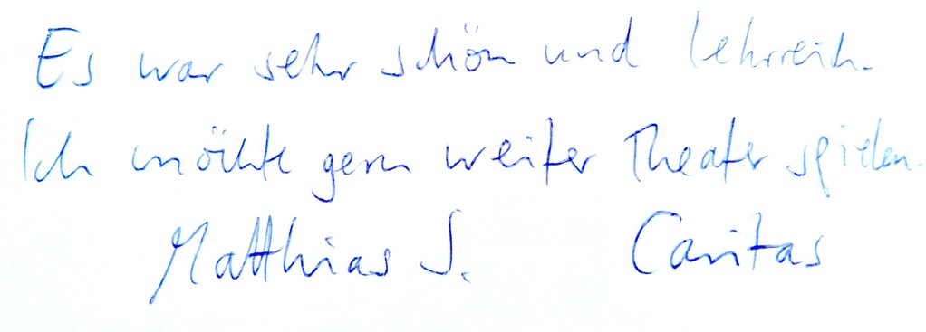 Vielen Dank für den wirklich sehr lehrreichen und unterhaltsamen Theaterworkshop,